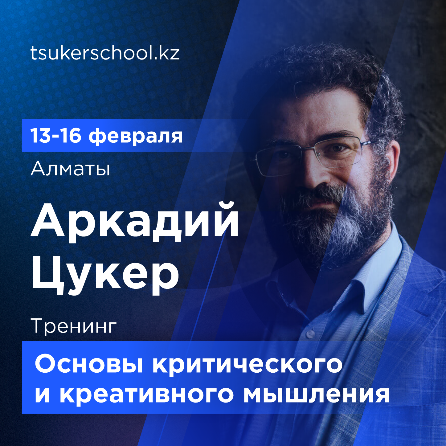 | Дорогие друзья, коллеги и партнеры! Рады сообщить, что с 13 по 16 февраля в Алмате пройдет тренинг Аркадия Цукера - "Основы критического и креативного мышления"!