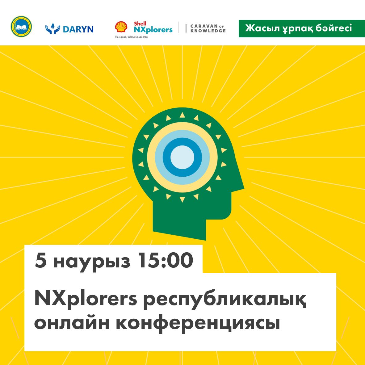 «Дарын» РҒПО, Шелл Қазақстан және «Caravan of Knowledge» бірлесіп «NXplorers: Жасыл Ұрпақ Бәйгесі» республикалық жобасының іске қосылатынын хабарлайды. «NXplorers: Жасыл ұрпақ бәйгесі» - бұл сыни, талдамалық және креативті ойлау құралдары арқылы экологиялық мәселелерді шешуге арналған NXplorers халықаралық әдіснамасы бойынша жоба. Әдіснама әлемнің 18 елінде қолданылады.